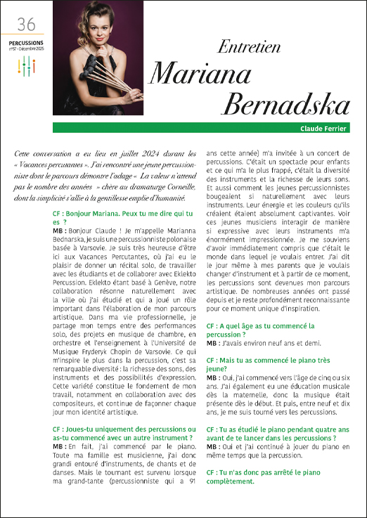 Revue semestrielle de l’association française de percussion.