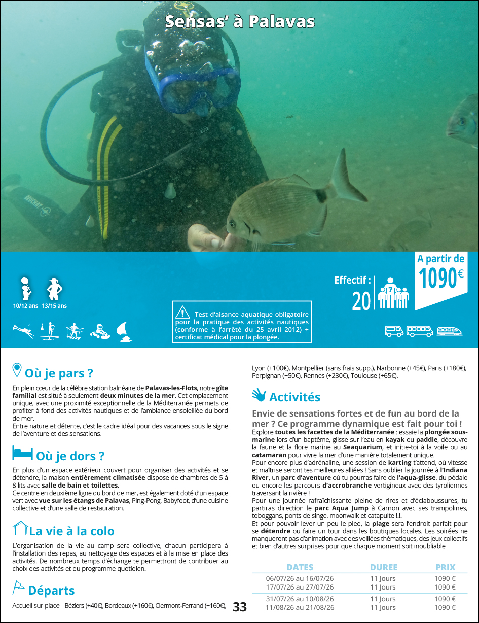 Catalogue présentant la structure de Vacances Evasion et les différents séjours proposés aux jeunes.